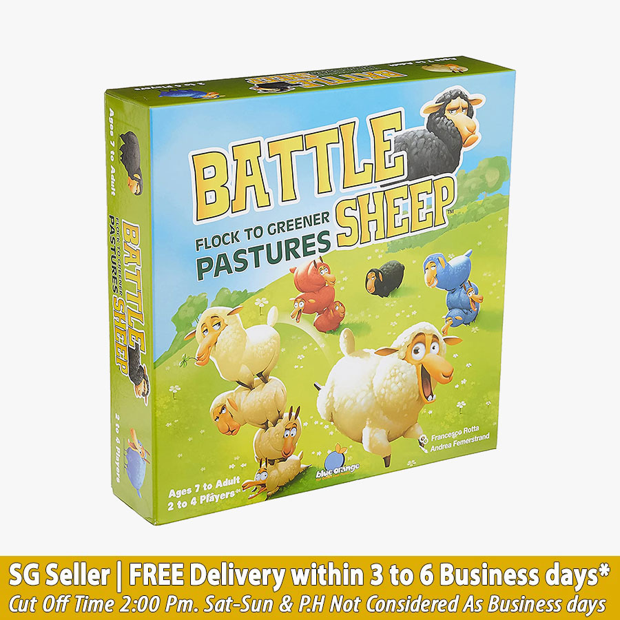 All Items are Brand New and In Mind Conditions. During Transit there are always chances of dents n creases. So Please choose self collect if you need Boxes in Mint condition. Returns and exchanges are not allowed for any items after delivery. Opposing sheep herds go to head to fluffy head in a strategy game the whole family will love. The goal is to occupy the most pastures with your sheep. On their turn, players split a stack of their sheep and move a portion as far is it can go in a straight line to a new pasture. Watch out for sneaky sheep and plan your moves carefully to fence out your foe! A different playing board is assembled before every game, so Battle Sheep is full of new challenges every time you play!