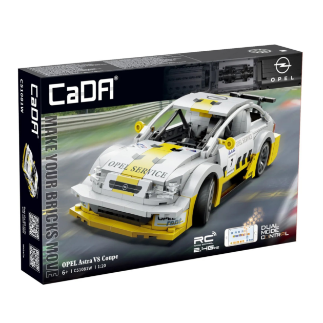 CaDA Opel Astra V8 Coupé is officially licensed by Opel, based on the Opel ASTRA V8 Coupé rally car. The shape is retro and the ratio is approximately 1:20. 2. 4G Bluetooth APP remote control for forward, backward, left turn, right turn walking function, ultra-long remote control distance, flexible body rotation, solid structure and not easy to fall apart in case of collision.