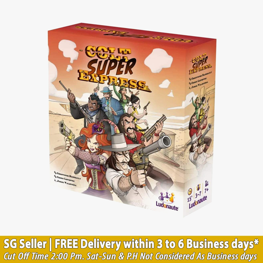All Items are Brand New and In Mind Conditions. During Transit there are always chances of dents n creases. So Please choose self collect if you need Boxes in Mint condition. Returns and exchanges are not allowed for any items after delivery. Colt Super Express has the spirit of the original, award-wining Colt Express in the form of a fast-paced, survive to win format that players can take anywhere. Players compete to be the last Colt Express rider standing because there can only be one when this train stops. Each round, players will place one of their five action cards face down in a pile to determine their what they’ll do when they are revealed, including moving, shooting, and more. At the end of the round, the last train car is removed . . . and so is anyone in it! If more than one player is alive in the final car, the entire train explodes, taking them with it.
