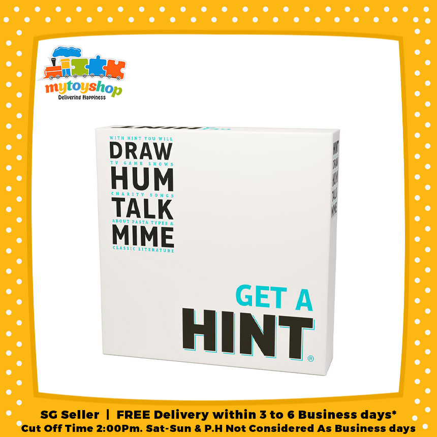 All Items are Brand New and In Mind Conditions. During Transit there are always chances of dents n creases. So Please choose self collect if you need Boxes in Mint condition. Returns and exchanges are not allowed for any items after delivery. In HINT, your teammates have to guess what you are trying to tell them. Along the way you both mime, draw, hum and talk about everything from ‘European Capitals’ and ‘Movie Villains’ to ‘Songs about wink’ and ‘Pizza Fill’. You must be both quick and creative, but beware! There is always one forbidden word that you may not use. An entertaining party game for everyone that gets the hint.
