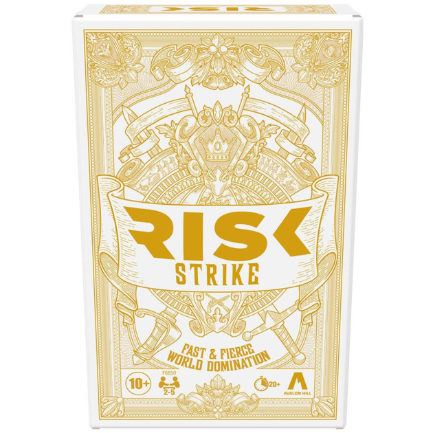Fast and fierce world domination! Get off the board and right into the action with this Risk Strike cards and dice game, a fresh twist on the Risk board game! Gameplay is simple, but highly strategic. Declare which continent you want to attack, deploys your troops, and roll the dice to start battling. Use tactics cards to sabotage, bombard, spy, and more in pursuit of world conquest. Defeat your opponents in battle to conquer continents and earn domination coins. The first player to earn 2 domination coins wins! The Risk Strike game is an exciting blend of classic Risk gameplay and the raw emotions of fleeting alliances that can turn on you with the play of a card. It’s a fun strategy card game for Family Game Night, and with a compact size, it makes a great travel card game for playing anytime, nearly anywhere!