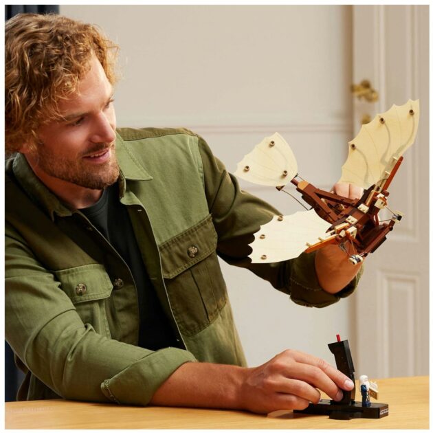Explore the evolution of aeronautical innovation or gift a history-lover with the LEGO Icons Leonardo da Vinci’s Flying Machine (10363) home and office desk decor building set for adults. Craft a detailed model of da Vinci’s visionary ornithopter featuring an open airframe with flappable textile-covered wings driven by a visible interplay of string, hinges and pulleys. This captivating centerpiece includes a display stand with an attachable Leonardo da Vinci minifigure holding a quill and sketch. Get the most out of this model building kit with the LEGO Builder app, where you can zoom in, rotate and view models in 3D as you build. The app also allows you to build as a team, track your progress and explore and save other sets. Take time out for a mindful building project with this collectible LEGO ornithopter set, a great holiday or birthday gift idea for science and history enthusiasts. Discover the inspiring range of LEGO creative building sets designed specifically for adults.