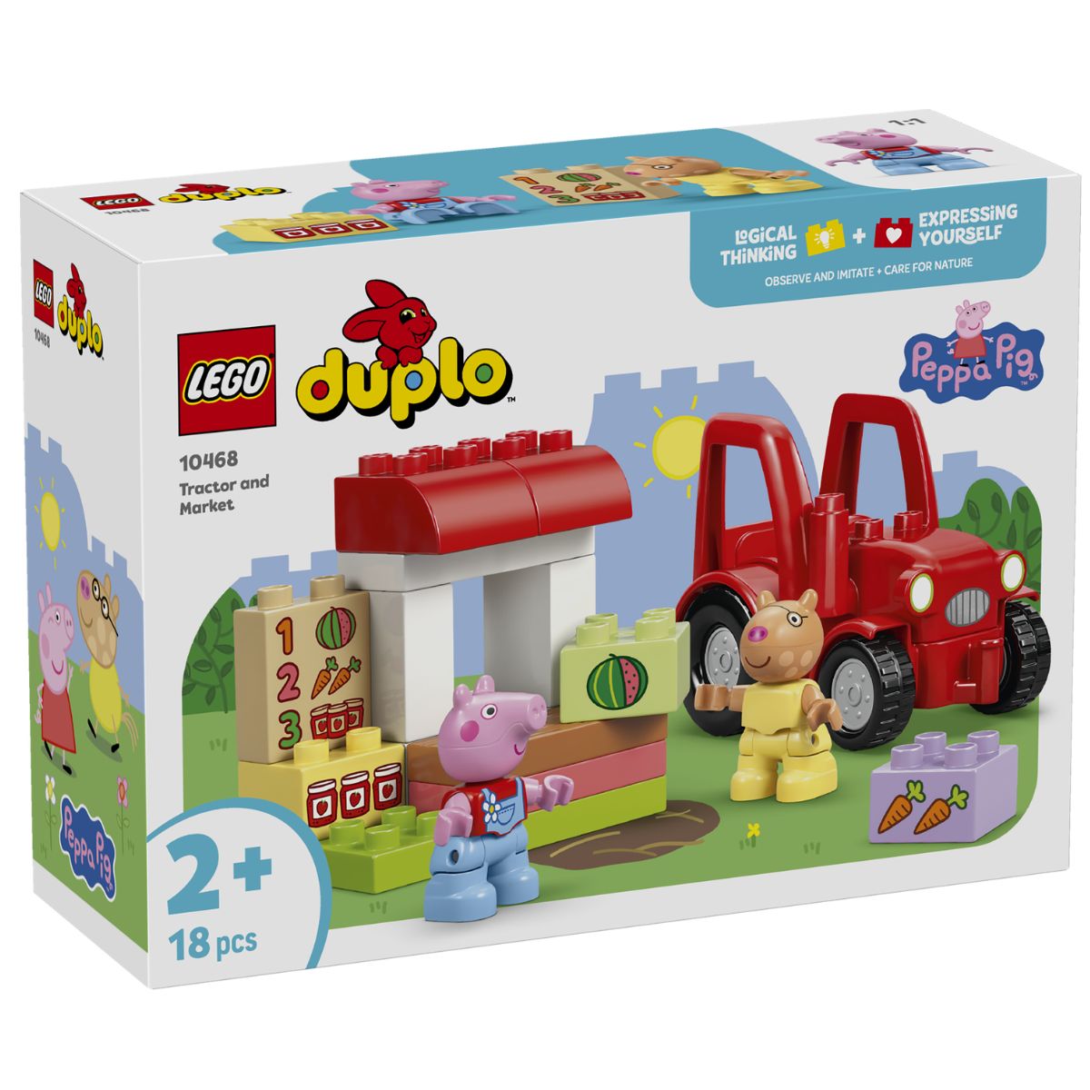 Help toddlers cultivate their creativity with the Peppa Pig Tractor and Market (10468) building toy. Toddlers ages 2 years old and up immerse themselves in imaginative play as they imitate running a farm store and stocking it with the LEGO DUPLO bricks decorated with food items to sell. This pretend play toy comes with Pedro Pony and Peppa Pig figures, a drivable red tractor and carrot, watermelon and jam jar bricks. This toddler learning toy comes with lots of development opportunities. By observing and imitating scenes from the show, they can sharpen cognitive skills, such as problem-solving and memory. Little builders use their fine motor skills to assemble the tractor and build the stall. The set features a menu decorated with a watermelon, carrots and jam jars. Toddlers can practice number recognition and matching to find the corresponding decorated brick. Contains 18 pieces.