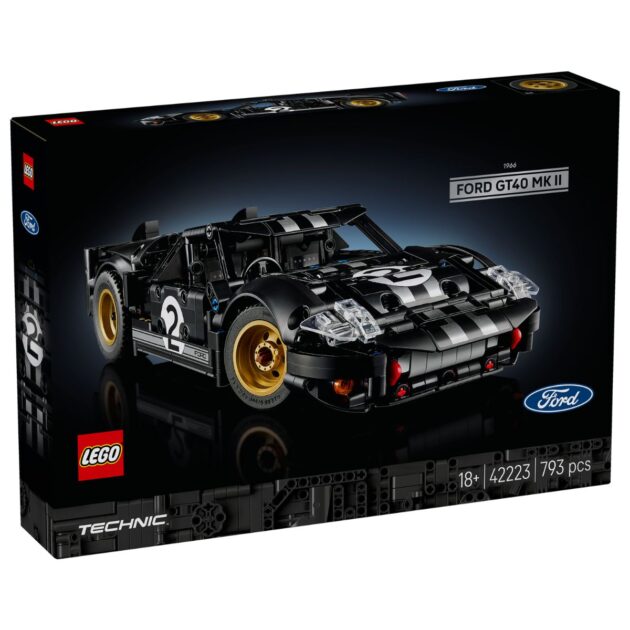 Drive to victory and celebrate a motoring icon with this LEGO Technic 1966 Ford GT40 MKII Race Car model for adults (42223). Car lovers, racing fans and building enthusiasts ages 18+ can invoke the spirit of an iconic endurance race with this realistic model version of an iconic vintage car. Have fun exploring the detailed features of the set. Use the knob on top of the car to steer. Check out the opening doors and admire the black and silver livery that’s inspired by the real-life champion car. Open the engine cover to reveal the V8 engine, then use the lever inside to open the hood. After you’ve built it, you can proudly display your race car in any room or office. Drive your desire for high-performance vehicle building kits with the range of LEGO Technic collectible cars for adults. Enjoy enhanced building with the LEGO Builder app, zooming and rotating with 3D instructions, while saving and tracking progress – all from the app. Set contains 793 pieces.
