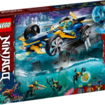 The ninja playset has 4 minifigures: Scuba Jay and Scuba Cole, both dressed in underwater gear and flippers, and 2 Maaray Guards with cool weapons. Kids can stage make-believe battles on land or under the sea to see who wins the wave amulet toy that comes with the set.