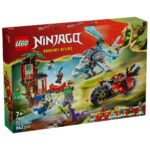 Boys and girls ages 7 plus have all they need to play out battle action with this Ninja Vehicle Tree House Battle (71857) building set, based on season 4 of the NINJAGO Dragons Rising TV show. This fighting toy playset comes with a 3-story tree house, a helicopter toy, a motorcycle toy and 6 minifigures. The tree house toy includes a workshop, a tearoom, a terrace, a swinging vine rope, a trap that releases a small rock, a rotating bridge and a stud shooter. Kids can enjoy unlimited role-play options with a motorcycle toy that has moving wheels, a saddle-cockpit and 2 stud shooters, or take to the sky with a helicopter toy that has an opening cockpit and rotating blades. The NINJAGO set features 6 minifigures: Kai, Zane, dragon form Jay and Euphrasia to play out battles against the Acid Monster and Loyalist. Kids can build the playset with confidence using the LEGO Builder app – zoom, rotate in 3D and track progress with easy-to-follow digital instructions. Set contains 642 pieces.