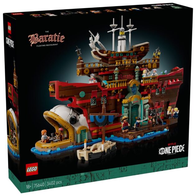 LEGO ONE PIECE The Baratie Floating Restaurant (75640) re-creates the iconic setting of many ONE PIECE adventures. A great gift for adult fans of the ONE PIECE Netflix live action show, the model is packed with authentic details and an iconic cast of minifigures from the show. This impressive ship-shaped display piece contains many accessible rooms within its interior, including kitchen and dining areas, Zeff’s quarters and the treasure room. Classic scenes can be reproduced with the 10 LEGO minifigures: Luffy, Zoro, Nami, Usopp, Sanji, Zeff, Garp, Helmeppo, Koby and Mihawk. This kit also contains authentic accessories, including 5 ‘Wanted’ posters. The LEGO Builder app lets users zoom in, rotate models in 3D and track progress as they build. The extensive LEGO Sets for Adults range offers model-builders an immersive and rewarding experience. Contains 3,402 pieces.