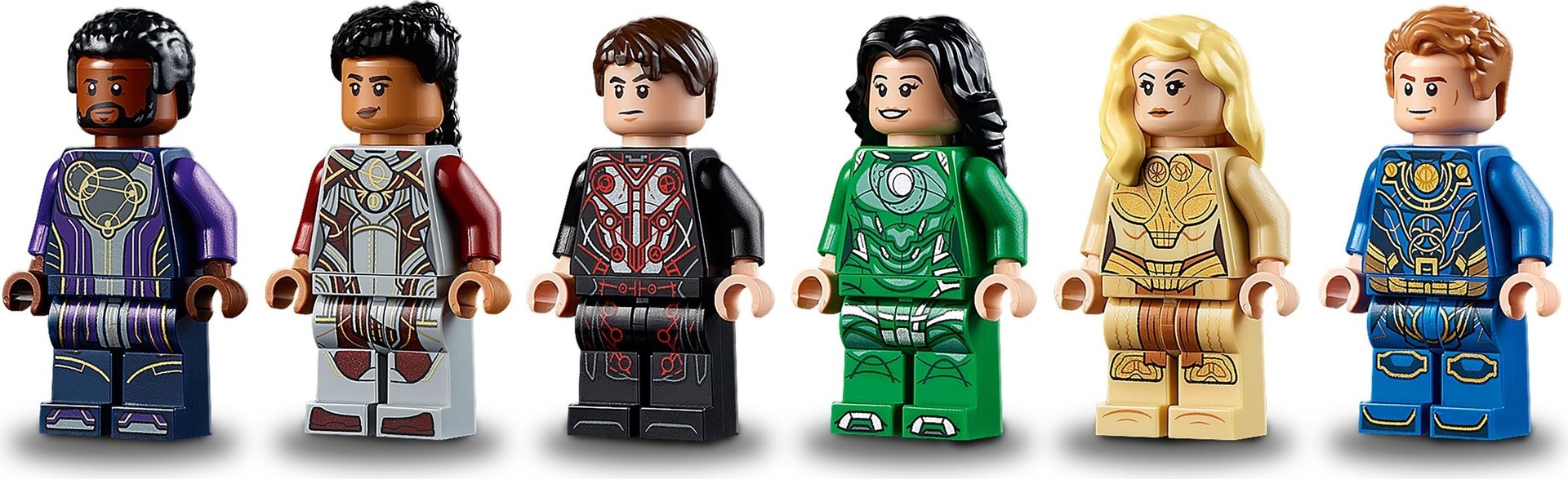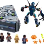 Includes 6 minifigures – Makkari, Ikaris, Thena, Sersi and the exclusive Druig and Phastos – 2 Deviant action figures, including Kro, the Deviant leader, a spaceship, weapons and accessories.
