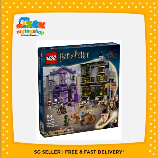 The collectible toy playset also includes 6 LEGO minifigures – Harry Potter, Garrick Ollivander™, Madam Malkin, Padma Patil, a wizard student, and a witch with a barrow of flowers – for creative play.