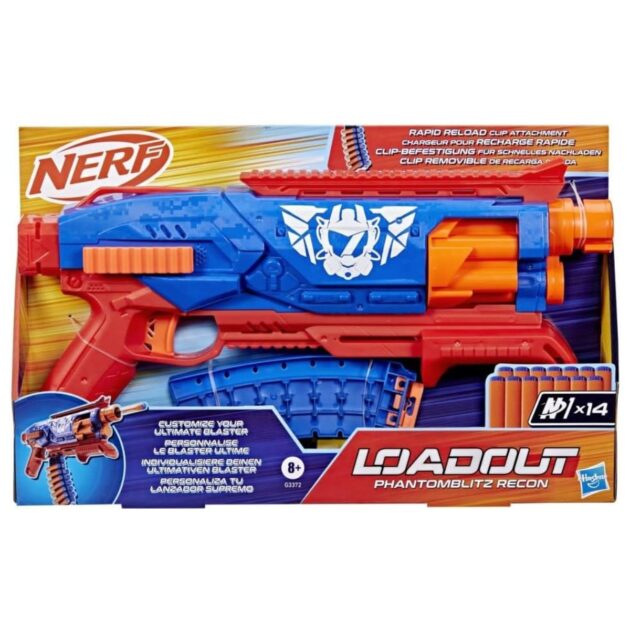 Bring video games to life and customize your ultimate blaster! Nerf Loadout dart blasters include interchangeable attachments to mix and match for more than 1000 combinations! The Nerf Loadout Phantomblitz Recon blaster includes a 14-dart storage attachment for rapid reloading that’s interchangeable with all other Loadout blasters. Fire into stealth missions with this pump action blaster that has a 6-dart revolving cylinder and features the epic Phantomblitz Recon skin. The Nerf Loadout Phantomblitz Recon blaster includes 14 Nerf N1 darts designed for extreme accuracy, speed, and distance. Build your Nerf Loadout blaster stockpile for endless customizable options (each sold separately, subject to availability). Nerf N1 darts are compatible only with Nerf N1 dart blasters. Eyewear recommended (not included). NERF and HASBRO and all related trademarks and logos are trademarks of Hasbro, Inc.