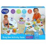 Get you little one buzzing with the Busy Bee Activity Table by VTech! This 2-in-1 grow with baby table caters for sit-down or standing play with the legs on or off. Interactive table features 6 play zones; Light up piano keys & peek-a-boo fox, mini story book, cute twisting bear, animal maze, colourful gears and beehive shape-sorting.