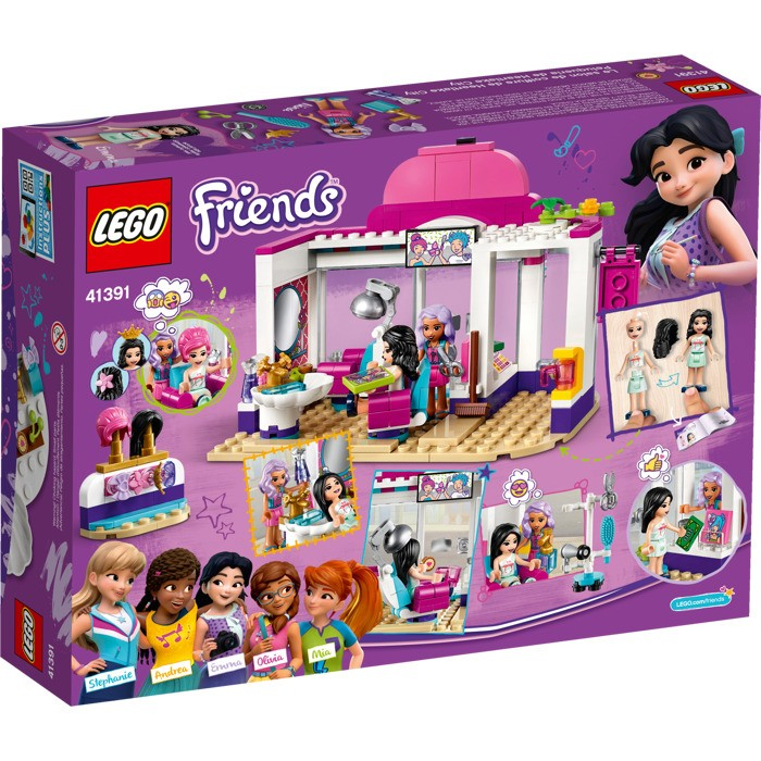 Where better to meet up with friends and share a gossip than at the salon? This toy hair styling set is brimming with scenarios for imaginative play. There’s a whole host of cute hairdressing toy salon accessories, such as toy hair dryers and toy wigs, to get imaginations sparking. With LEGO® Friends Heartlake City Hair Salon (41391) kids can role-play the client or the stylist – there's loads of crazy cuts waiting to be made. Action stations Wonderfully detailed stations allow kids to see the mini-doll figures progress through the pretend hair salon. Cute features include a shell-shaped sink, a hair-cutting chair, a styling station and a cash register. Purple bangs anyone?