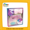 Includes hair wrap, headband, eye mask with gel beads, hair brush and bath poof.